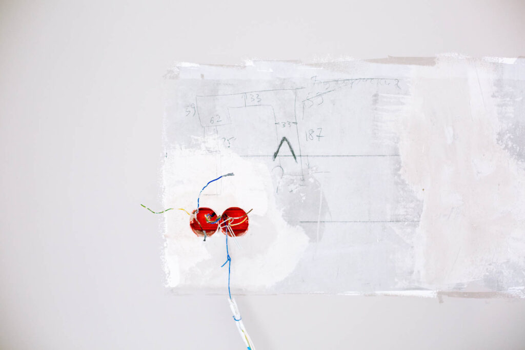 編註:出線孔又稱為集線盒,它是各種開關插座的出口,透過面板作為集中點。在安裝時需要注意牢固固定,並確保蓋板密合。配置集線盒的時候,可在牆面上註明尺寸並確認水平的整度。