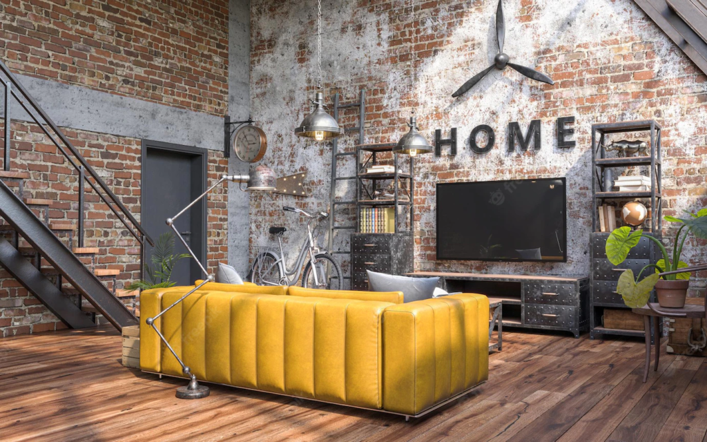 比較接進傳統(舊時代)的工業風風格,空間挑高、不做隔間,保有工廠的視覺效果,甚至刻意讓磚牆露出,採用舊木頭、鉚釘、管線焊接等方式創造陳舊倉庫感。不過復古工業風比較適合原本就是老屋的空間,若是新成屋要做成這樣的效果,反而會花費較多成本。