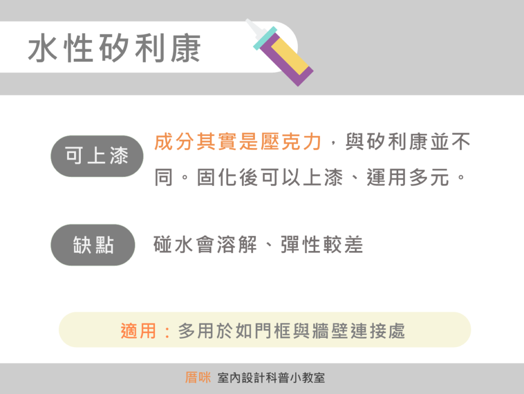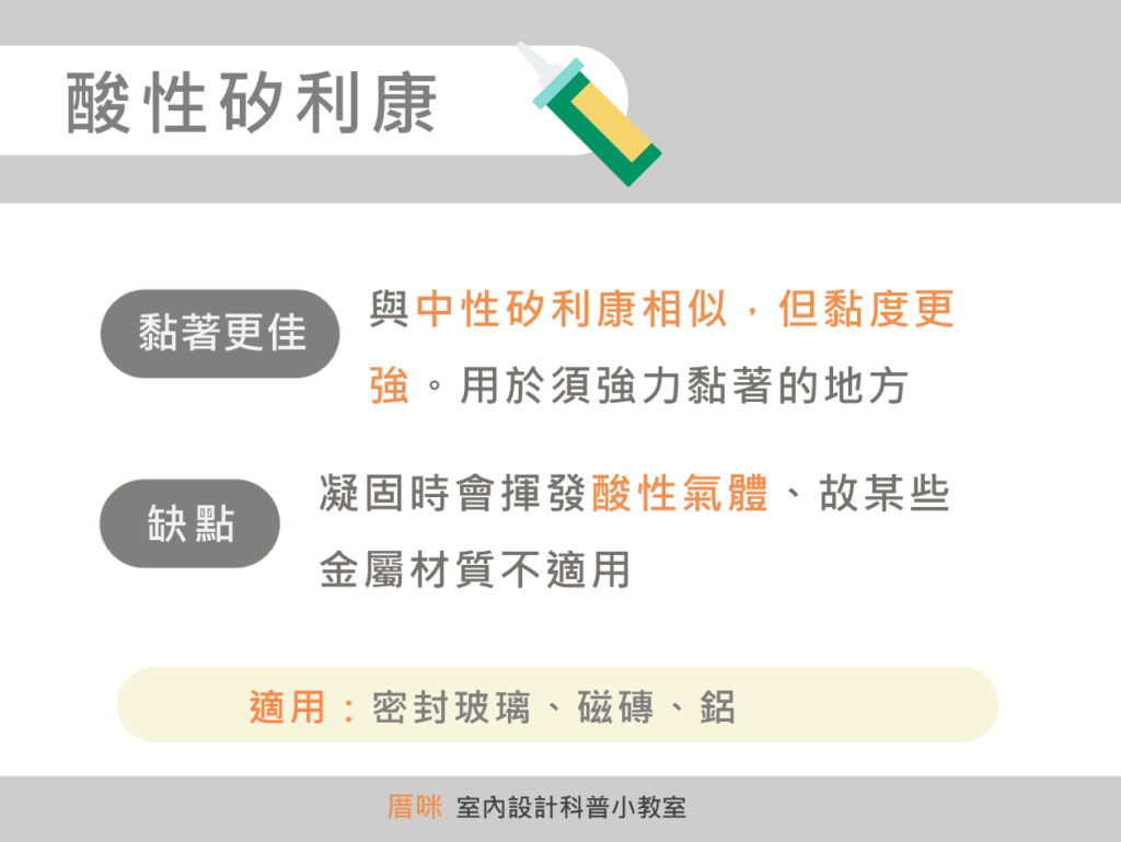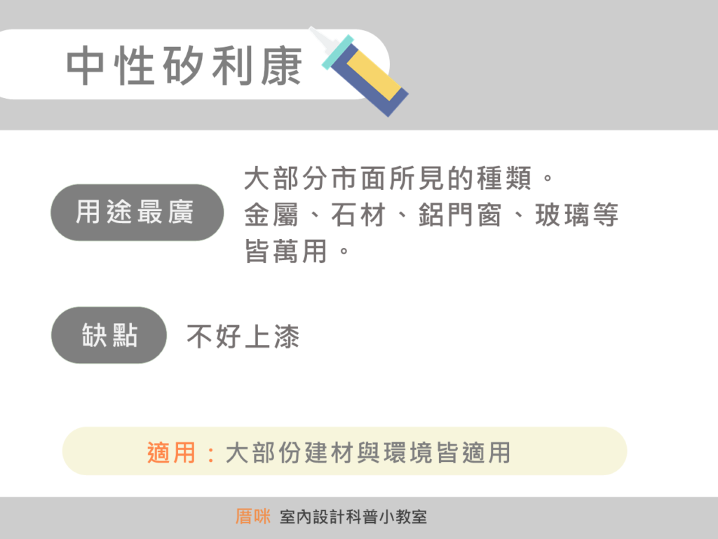 目前市面上常見的矽利康其實有四種,但多數人終其一生都只買中性矽利康,不知道還有其他好物存在。今天看完這篇之後,買矽利康之前記得想清楚想使用時機跟需求,再看清楚自己要買哪一種唷。